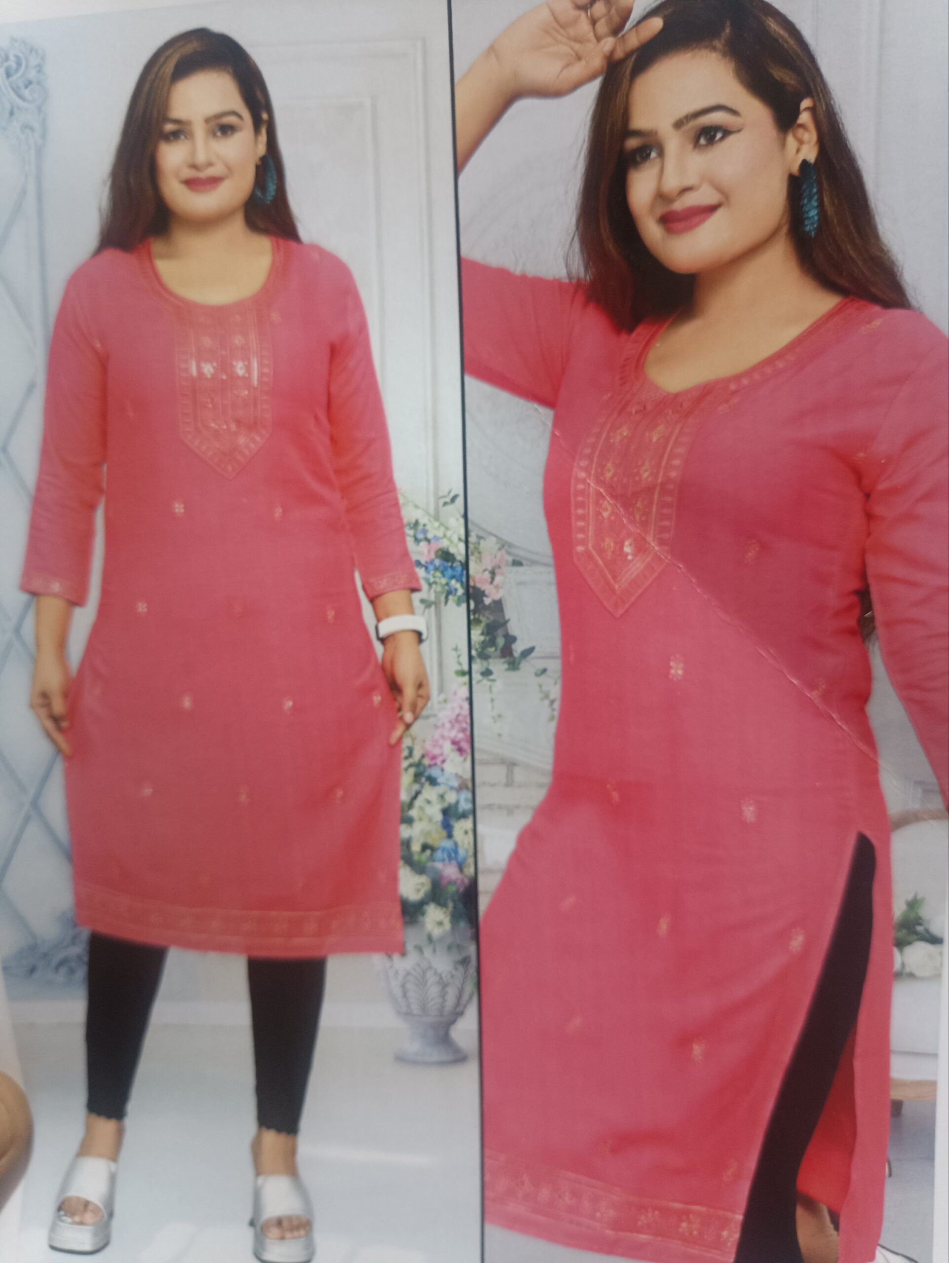 ट्रेडिशनल पिंक कॉटन कुर्ती | रोज़ गोल्ड एम्ब्रॉयडरी वाली कैज़ुअल वियर कुर्ती