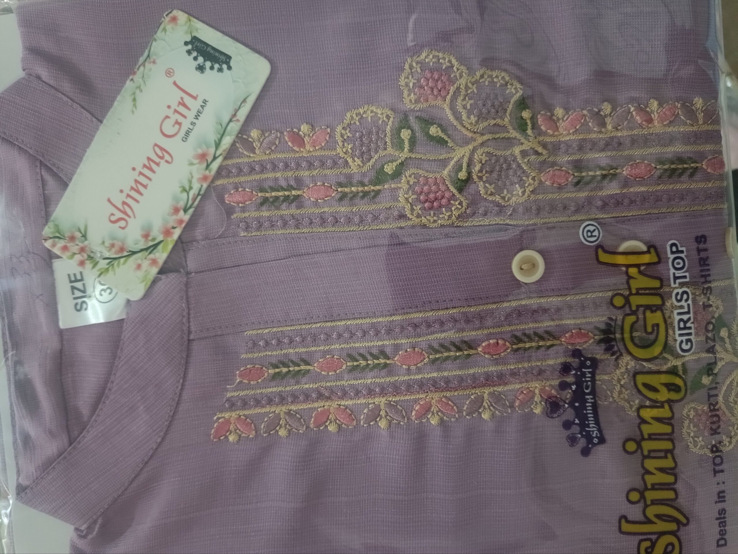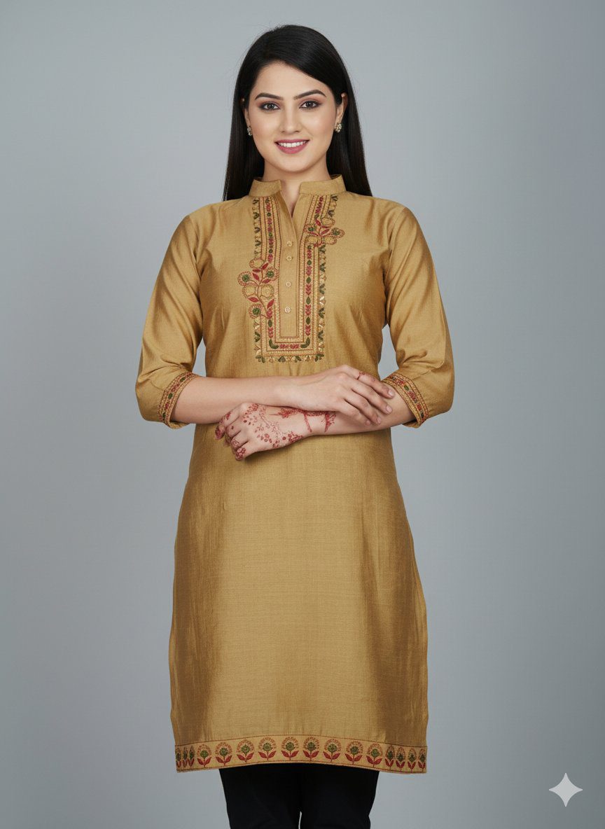 शाइनिंग गर्ल एम्ब्रॉयडर्ड चंदेरी सिल्क कुर्ती