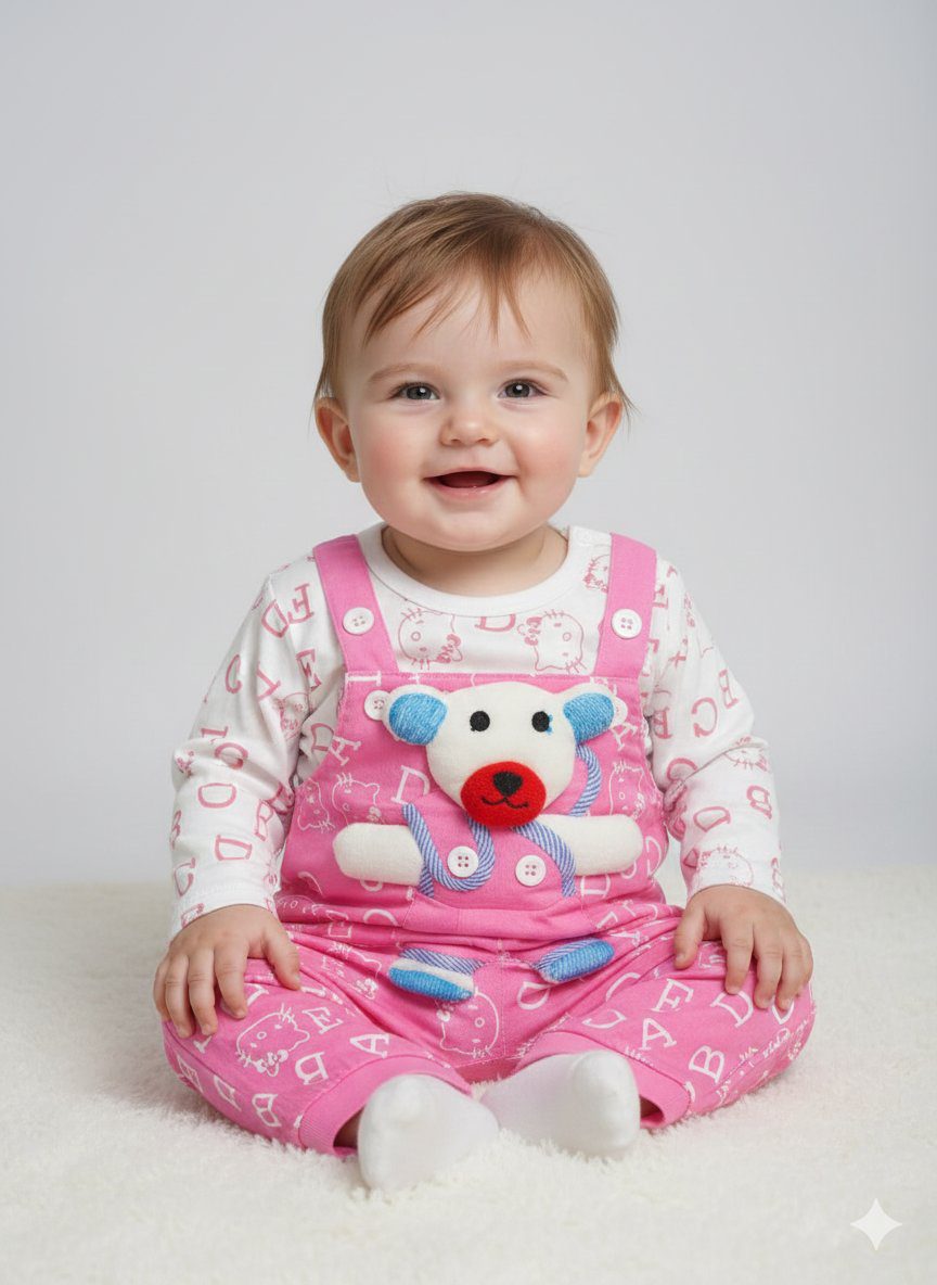 Dress your little one in adorable comfort with our pink bear-themed baby romper and long-sleeve top set. Made from soft, breathable cotton, this charming outfit features a playful bear appliqué and an all-over letter print, perfect for everyday wear and special occasions