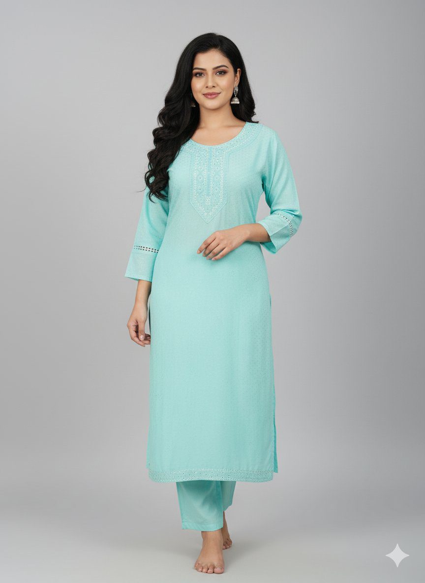 Discover our exquisite cotton kurta set, perfect for any occasion. This beautifully embroidered ethnic wear features a comfortable fit and elegant design, making it a must-have for your wardrobe. Shop now for a blend of tradition and modern style!