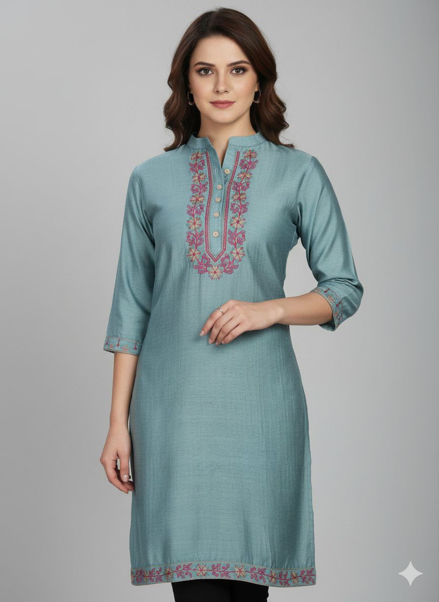 Elegant Embroidered Teal Kurta for Women - Premium Ethnic Wear