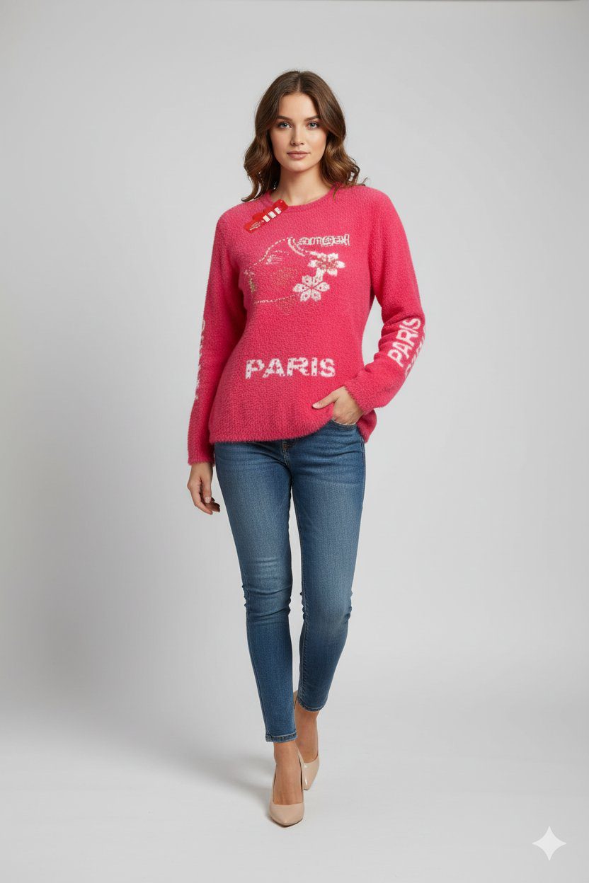 Parisian Chic Pink Knit Sweater – Women’s Cozy & Stylish