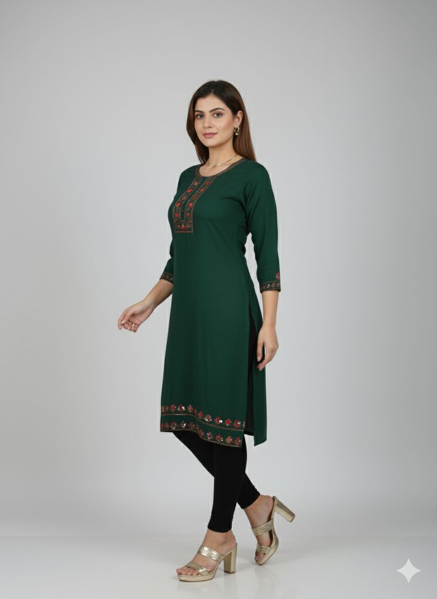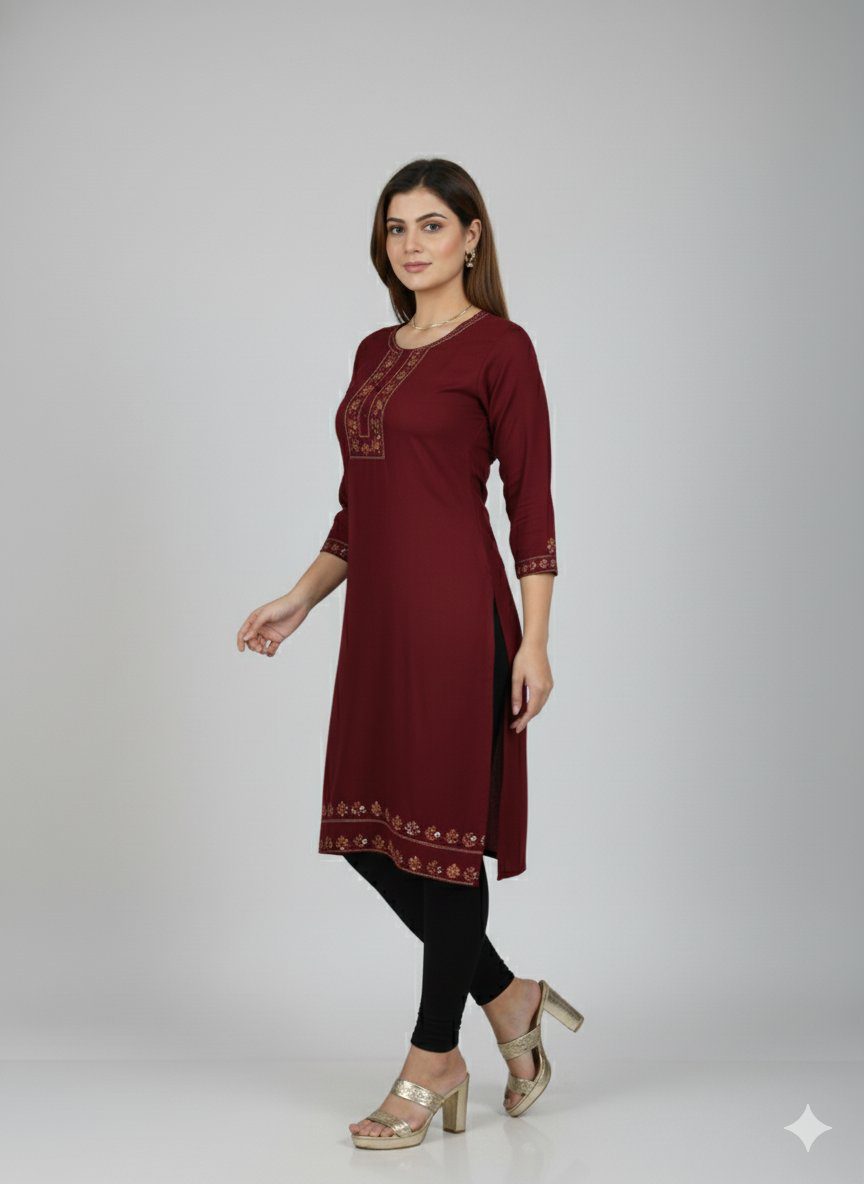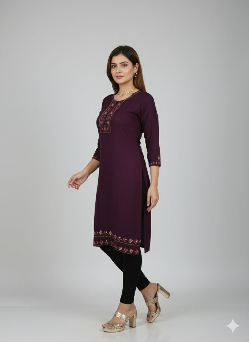 Shining Girl Women's Embroidered Kurti - Plus Size Available