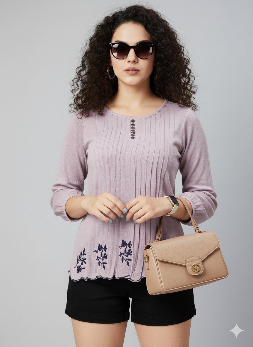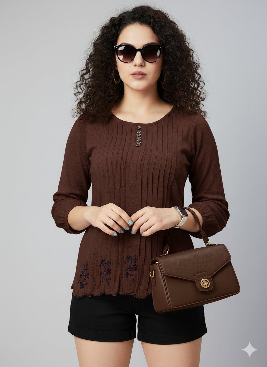 Elevate your everyday style with the Shining Girl Pleated Tunic Top. Featuring a chic pleated texture, 3/4 sleeves, and a flattering fit, these versatile solid tops are perfect for casual outings. Available in a variety of colors including lovely lilac, elegant beige, and rich brown. Pair them effortlessly with shorts, jeans, or leggings for a comfortable, fashionable look. Grab your must-have women’s tops today!