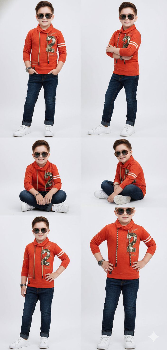 Discover this unique two-piece outfit for boys from The KIDZ Smile Fashion Hub. This set includes a stylish orange hoodie made from “Top-Important Fabric” with a distinctive “2” graphic, and comfortable RFD khaki pants. Perfect for casual wear, this D.NO:9114 set offers a trendy and comfortable look for your child. Available in size 16X26.